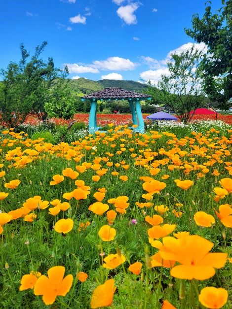 4. 살거리 : 꽃양귀비 가든 마켓, 꽃양귀비축제기념 손수건, 축제기념 마스크팩, 축제기념 빨간우산, 지역농산물, 꽃모종 , 꽃씨, 공예품