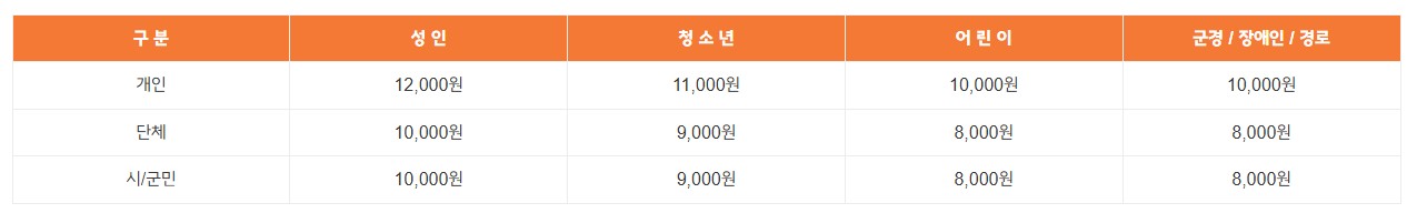 예매 할인가 : 성인 9,600원 / 청소년 8,800원 / 소인 8,000원