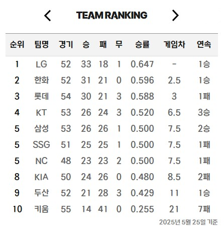 2025 시즌 KBO 리그, 정말 어느 팀이든 '지면 이상하지 않은 시즌'이라고 할 만큼, 전력 격차가 크지 않습니다. 매 경기 결과에 따라 순위가 요동칠 수 있는 시즌이죠! 야구는 마지막까지 아무도 알 수 없는 게임이니까요.
